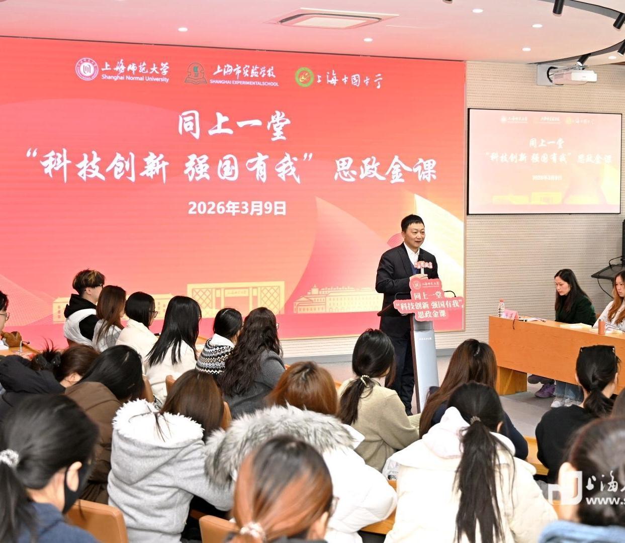 大中小学“同上一堂思政课”在上海师范大学徐汇校区举行。师生们一同探寻科技创新的时代密码,引导学生深刻理解科技强国这一国家战略的深刻内涵,明晰新时代青少年的使命担当。